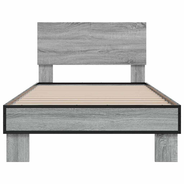 Harmaa sängynrunko 75x190cm puinen ja metalli