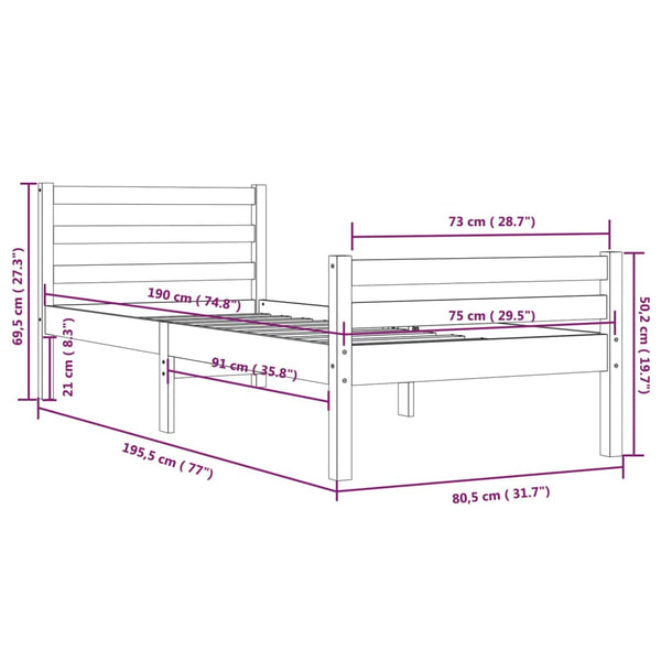 - Tämä sängynrunko sopii patjalle, jonka mitat ovat 75 x 190 cm (2FT6 Small Single).