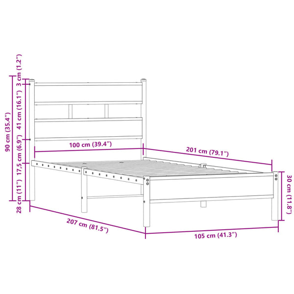 Savutammi sängynrunko ilman patjaa päädyllä 100x200cm