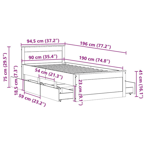 - Sopiva patjan koko: 90 x 190 cm (L x P) (Patja ei sisälly tilaukseen)