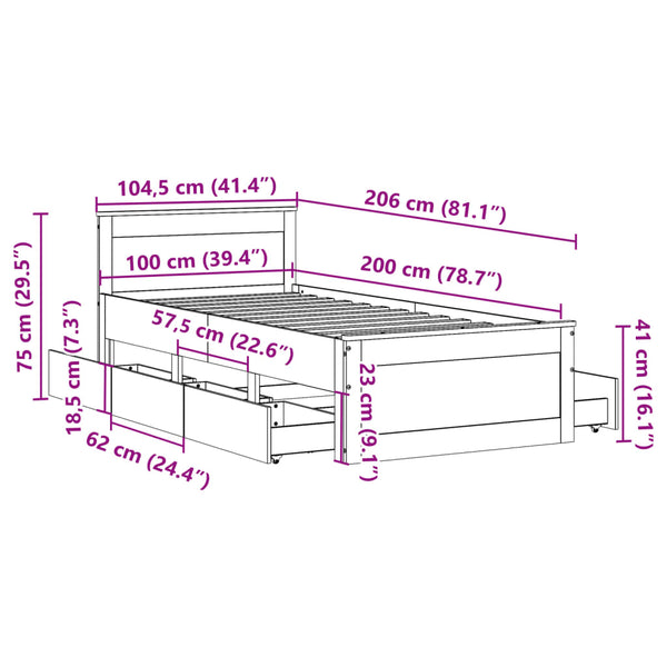 Sängynrunko ilman patjaa päätylevyllä 100x200cm mänty