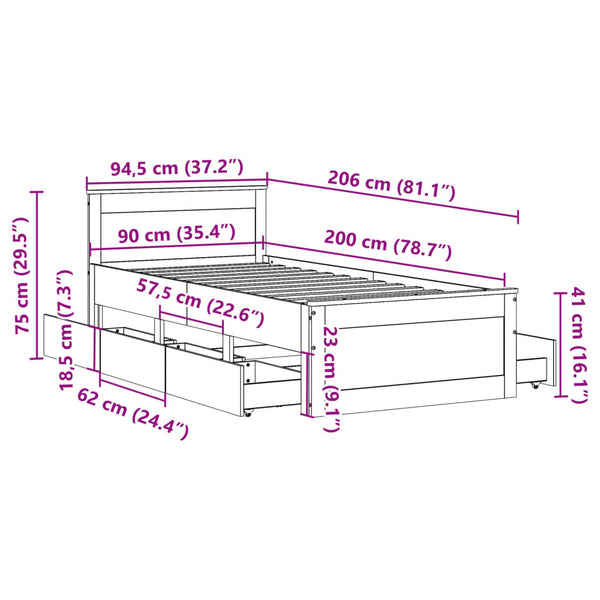 - Sopiva patjan koko: 90 x 200 cm (L x P) (patja ei sisälly toimitukseen)