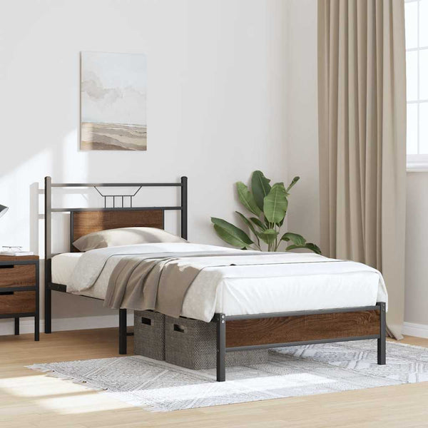 Ruskea tammi sängynrunko ilman patjaa 90x190cm puinen