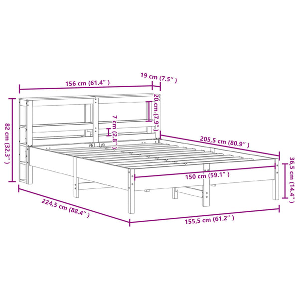 Valkoinen sängynrunko ilman patjaa 150x200cm mänty