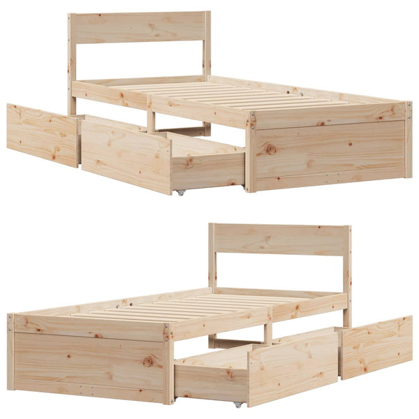 Sängynrunko laatikoilla 75x190cm mänty