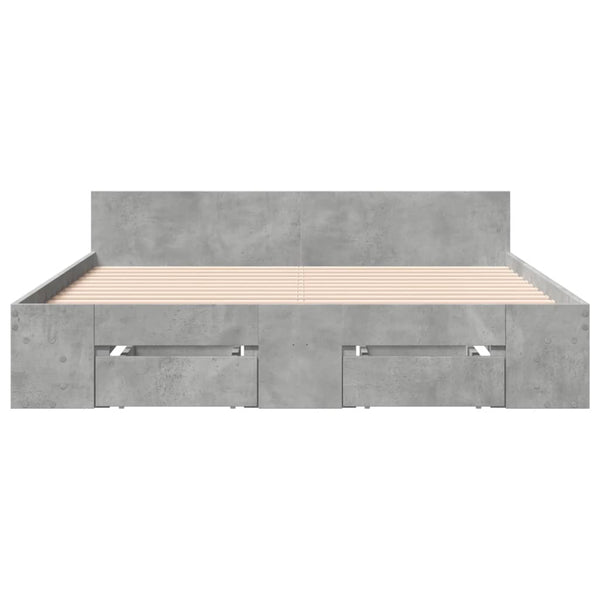 Betoninharmaa sängynrunko laatikoilla 120x190cm puinen