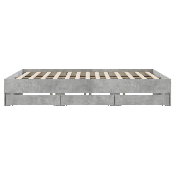 Betoninharmaa sängynrunko laatikoilla 180x200cm puinen