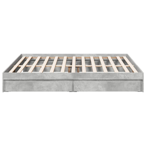Betoninharmaa sängynrunko laatikoilla 200x200cm puinen