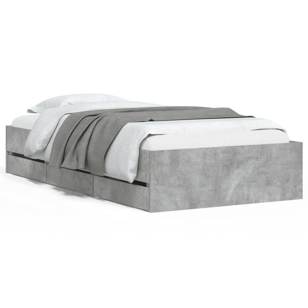 Betoninharmaa sängynrunko laatikoilla 90x190cm puinen