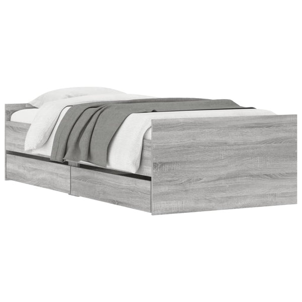 Harmaa sängynrunko laatikoilla 100x200cm sonoma