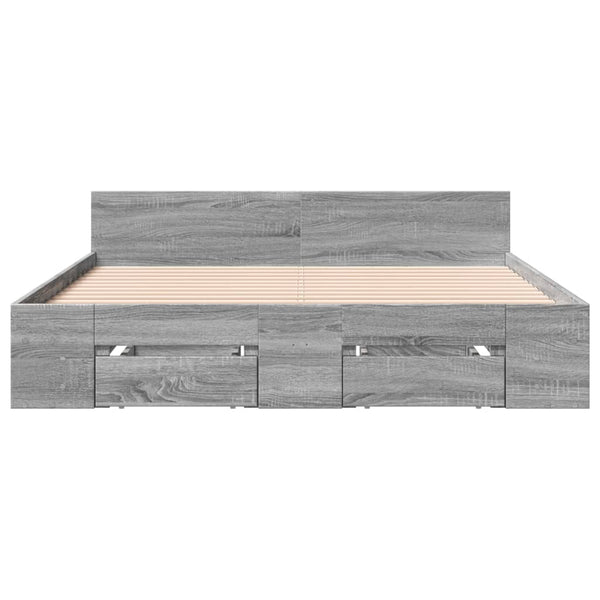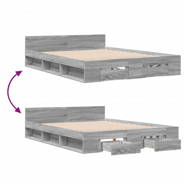 Harmaa sängynrunko laatikoilla 120x200cm puinen