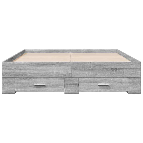 Harmaa sängynrunko laatikoilla 135x190cm puinen