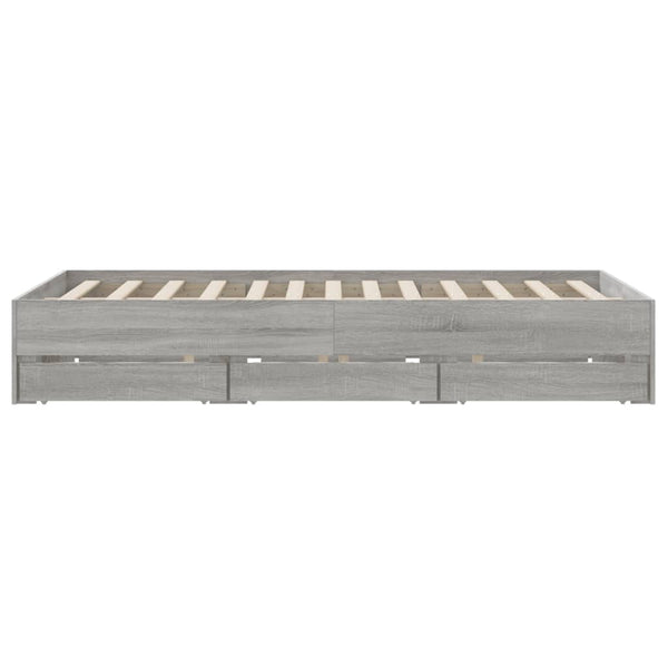 Harmaa sängynrunko laatikoilla 140x190cm puinen