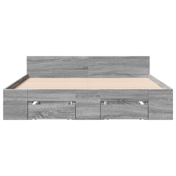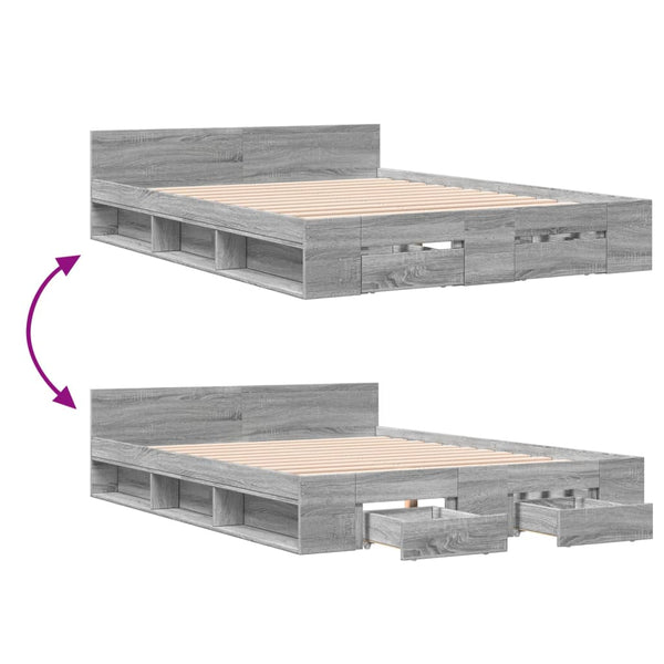 Harmaa sängynrunko laatikoilla 140x190cm puinen