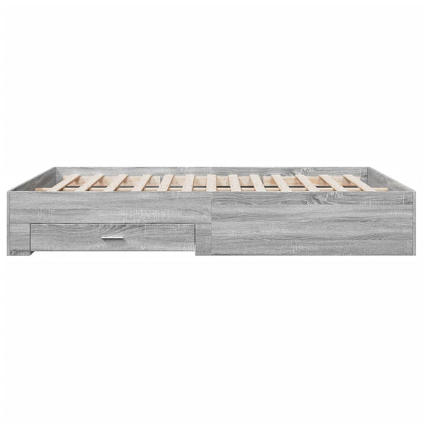 Harmaa sängynrunko laatikoilla 140x200cm puinen