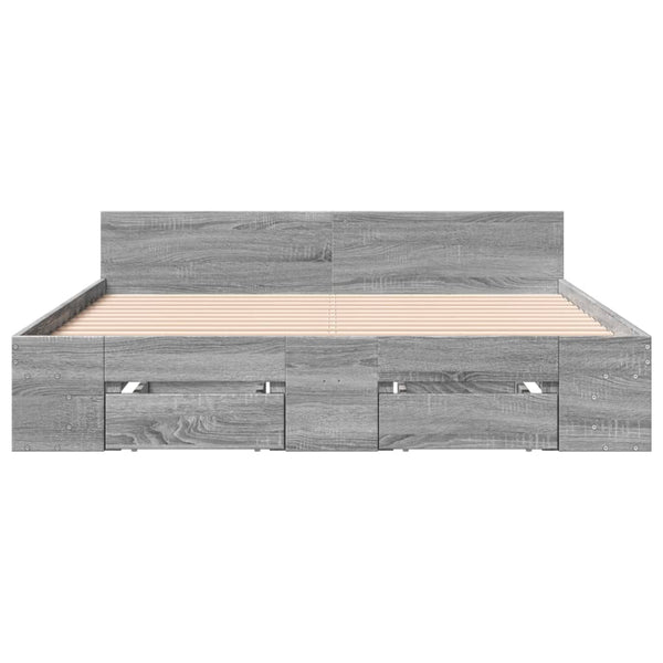 Harmaa sängynrunko laatikoilla 150x200cm puinen