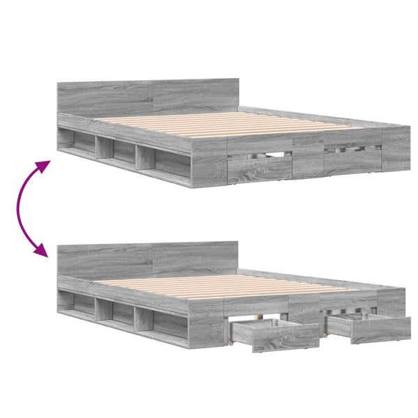 Harmaa sängynrunko laatikoilla 160x200cm puinen