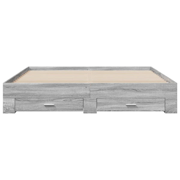Harmaa sängynrunko laatikoilla 180x200cm puinen
