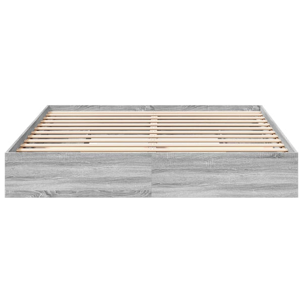 Harmaa sängynrunko laatikoilla 200x200cm puinen