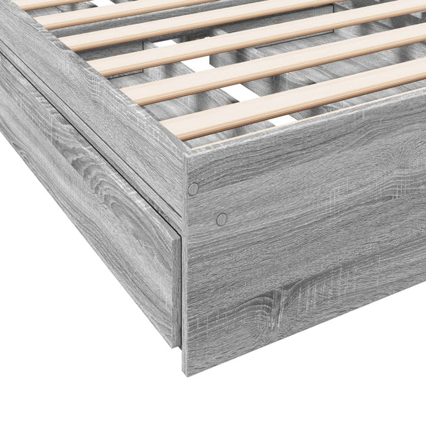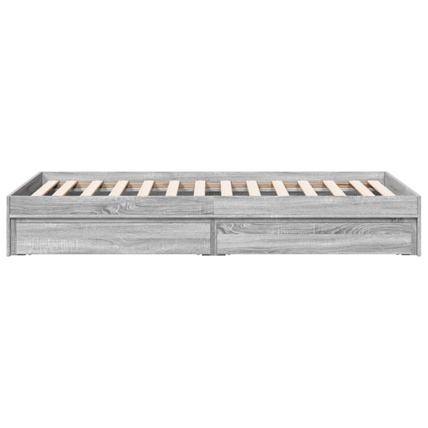 Harmaa sängynrunko laatikoilla 75x190cm puinen