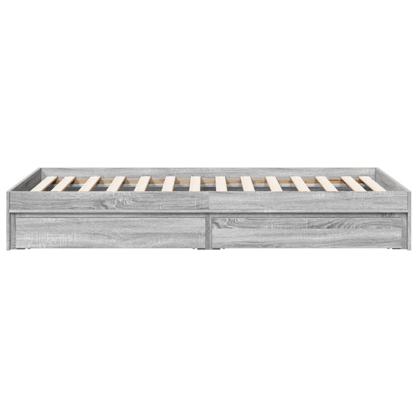 Harmaa sängynrunko laatikoilla 90x190cm puinen