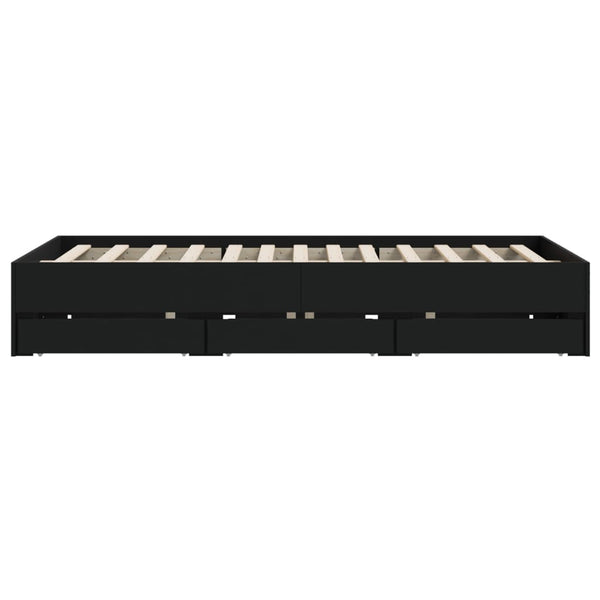 Musta sängynrunko laatikoilla 150x200cm puinen