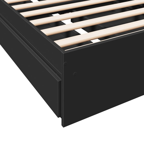 Musta sängynrunko laatikoilla 90x190cm puinen