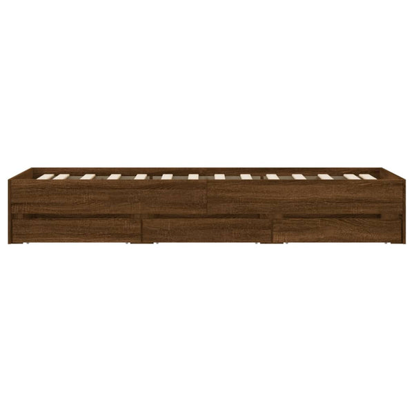 Ruskea tammi sängynrunko laatikoilla 100x200cm puinen