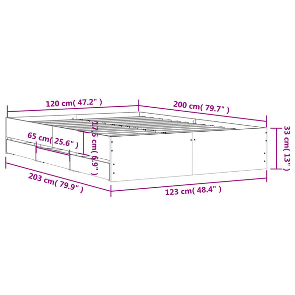 Ruskea tammi sängynrunko laatikoilla 120x200cm puinen