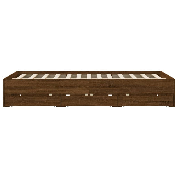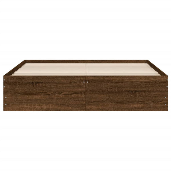 Ruskea tammi sängynrunko laatikoilla 150x200cm puinen