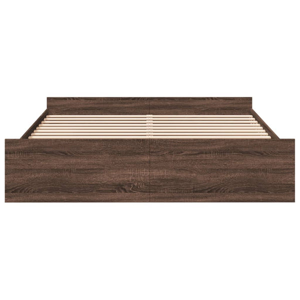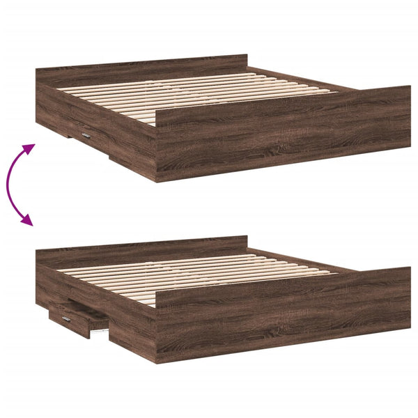Ruskea tammi sängynrunko laatikoilla 200x200cm puinen