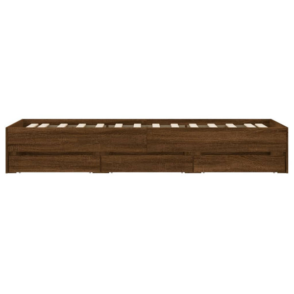 Ruskea tammi sängynrunko laatikoilla 90x190cm puinen