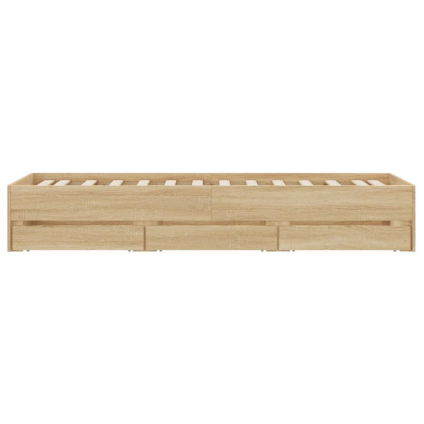 Sonoma-tammi sängynrunko laatikoilla 100x200cm puinen