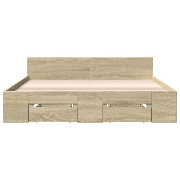 Sonoma-tammi sängynrunko laatikoilla 120x190cm puinen