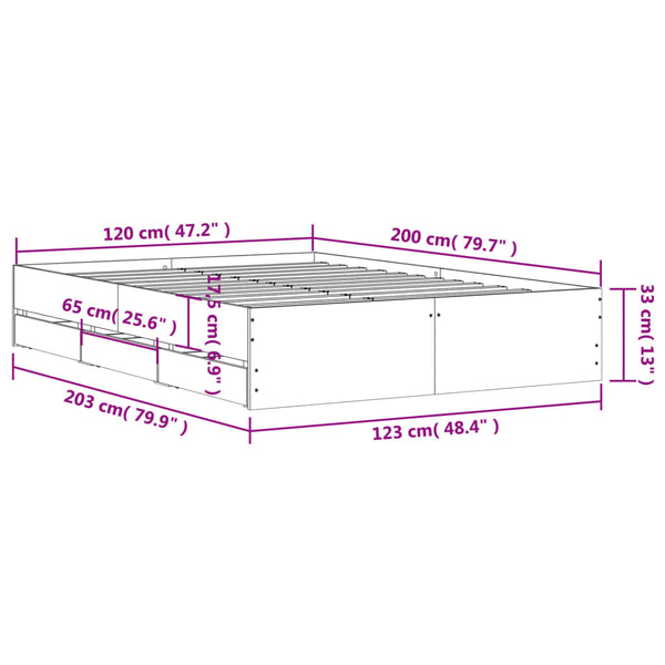 Sonoma-tammi sängynrunko laatikoilla 120x200cm puinen