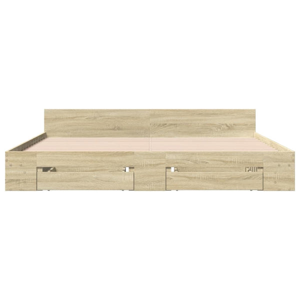 Sonoma-tammi sängynrunko laatikoilla 180x200cm puinen
