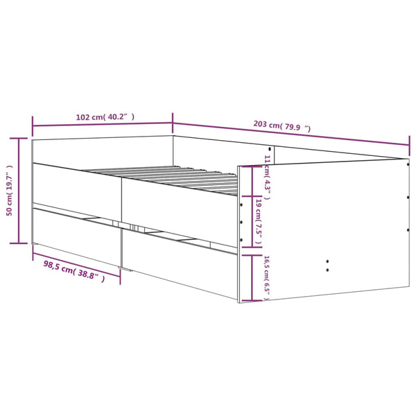 Valkoinen sängynrunko laatikoilla 100x200cm