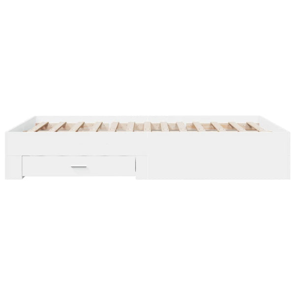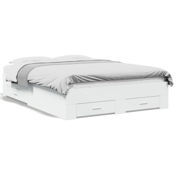 Valkoinen sängynrunko laatikoilla 135x190cm puinen