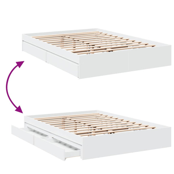 Valkoinen sängynrunko laatikoilla 150x200cm puinen