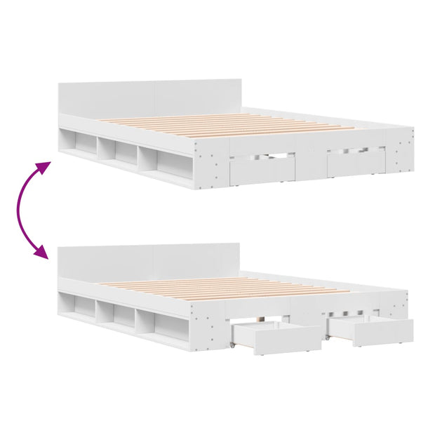 Valkoinen sängynrunko laatikoilla 160x200cm puinen