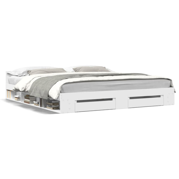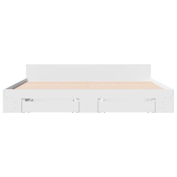 Valkoinen sängynrunko laatikoilla 200x200cm puinen