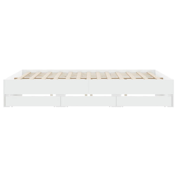 Valkoinen sängynrunko laatikoilla 200x200cm puinen