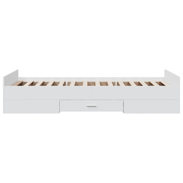 Valkoinen sängynrunko laatikoilla 75x190cm puinen