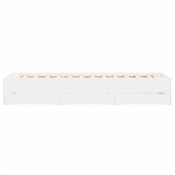 Valkoinen sängynrunko laatikoilla 90x200cm puinen