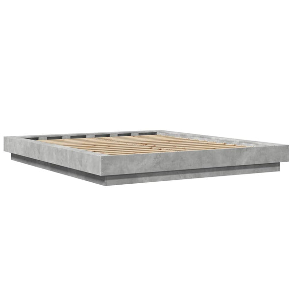 Betoninharmaa sängynrunko led-valoilla 150x200cm puinen