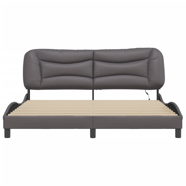 Harmaa sängynrunko 180x200cm led-valoilla keinonahka