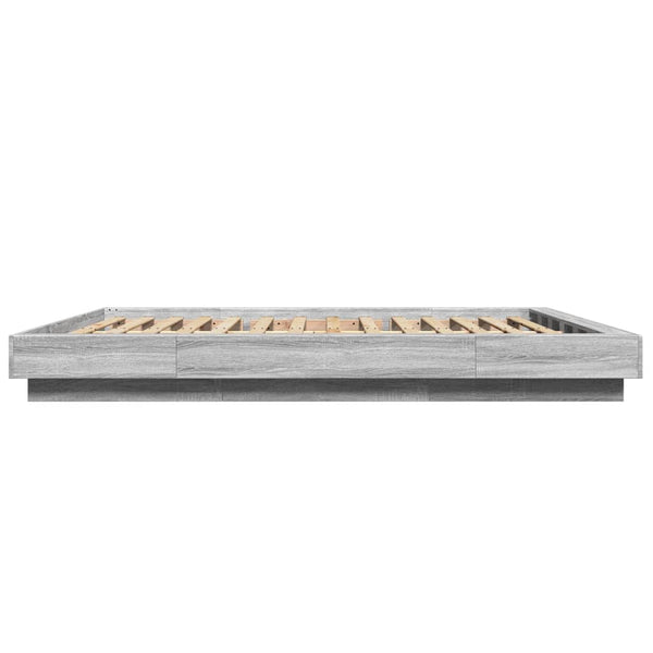 Harmaa sängynrunko 160x200cm led-valoilla, sonoma, puinen