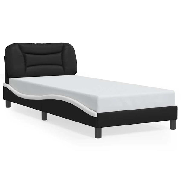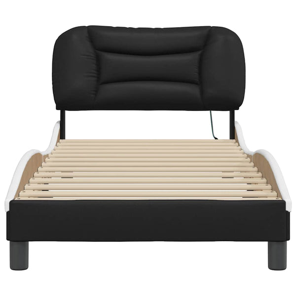 Musta/valkoinen sängynrunko led-valoilla 80x200cm keinonahka