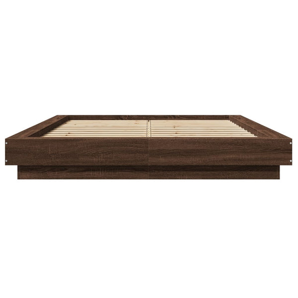 Ruskea tammi sängynrunko led-valoilla 120x190cm puinen