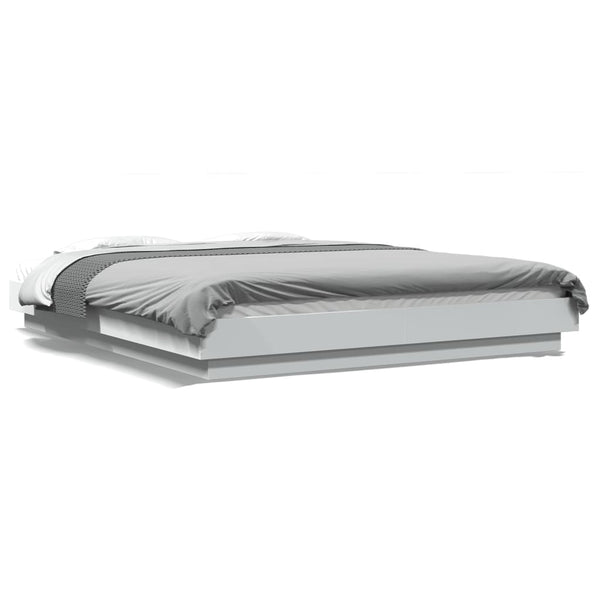 Valkoinen sängynrunko led-valoilla 150x200cm puinen